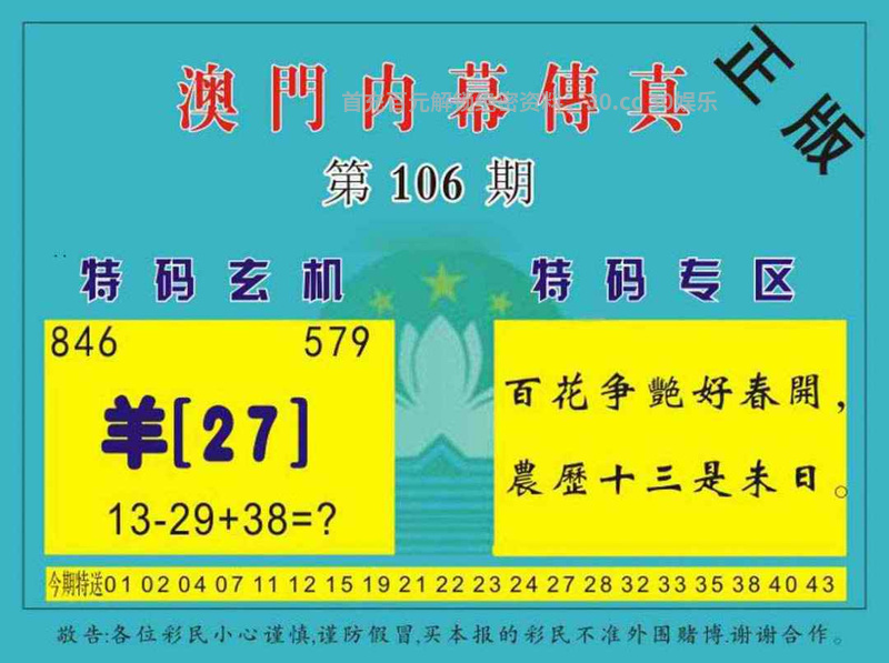 111期:【鬼谷子网★十码中特★中倒黑庄】